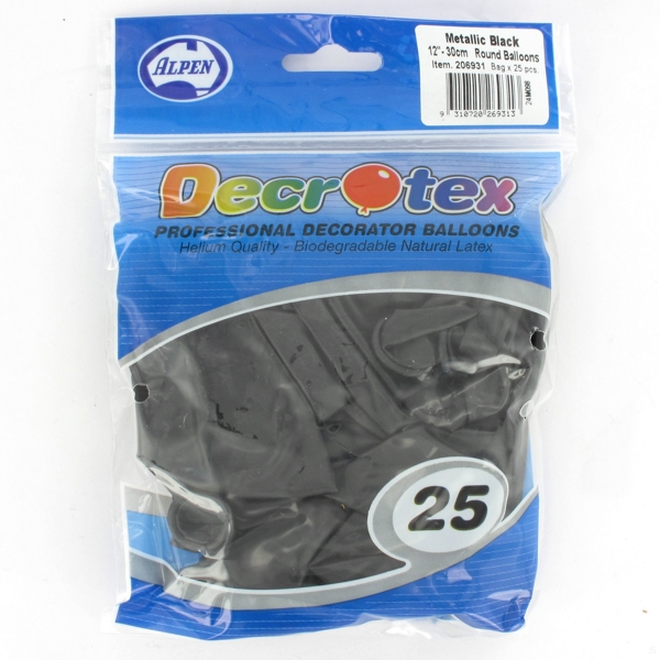 These metallic 30cm black latex balloons are perfect for decorating a party area or putting in a balloon arrangement as a gift! With 25 balloons in a pack, these balloons are helium quality, meaning they can be filled with either helium or air. Balloons should look their best for 10-12 hours, if filled with helium, before coming down.