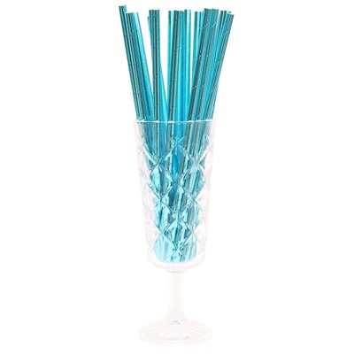 Pack of 20 blue foil paper straws, each measuring approx. 19.5cm in length.