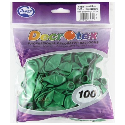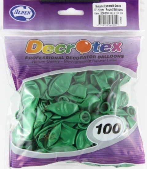 These small metallic emerald green balloons are 12cm (5in) in diameter when inflated and are perfect for any party! Each pack has 100 balloons, and are perfect for topiary trees, table decorations and much more and will ensure your decorations look fabulous! Made of biodegradable, helium quality latex, but they are designed to be filled with air and used in table decorations.