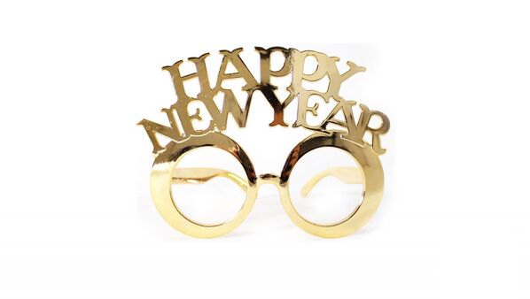 The plastic frames have a metallic gold finish and feature 'Happy New Year' wording.