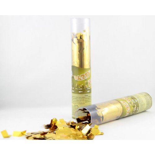 Metallic gold twist party popper, perfect for any celebration! Measures approx. 20cm in height. Shoots metallic gold foil approx. 7 metres into the air. Powered by compressed air. Directions for use included. In a handy pack of 24.