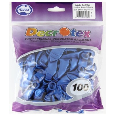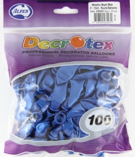 These small metallic royal blue balloons are 12cm (5in) in diameter when inflated and are perfect for any party! Each pack has 100 balloons, and are perfect for topiary trees, table decorations and much more and will ensure your decorations look fabulous! Made of biodegradable, helium quality latex, but they are designed to be filled with air and used in table decorations.