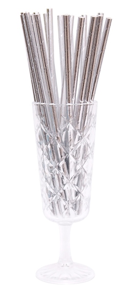 Pack of 20 silver foil paper straws, each measuring approx. 19.5cm in length.