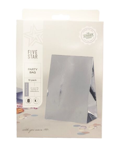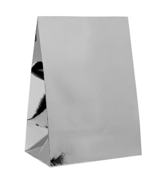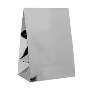 Each pack contains 10 paper bags with a shiny metallic silver finish and a flap with a self-adhesive tape strip to seal the bag.