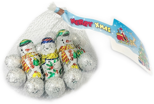 - 68g of milk chocolate Snowmen & Snowballs (approx. 12-13 pieces)