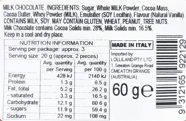 The mesh bag contains 60g of foil-wrapped milk chocolate bunnies (6 pieces) - a delightful treat!