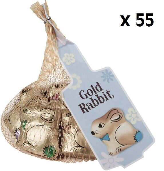 The mesh bag contains 60g of foil-wrapped milk chocolate bunnies (6 pieces) - a delightful treat!