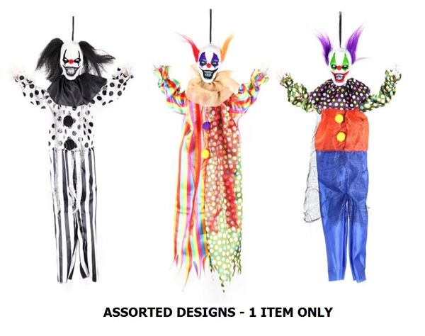 Available in 3 variants, this decoration measures approx. 48cm long and features poseable arms, satin attire and creepy face paint.