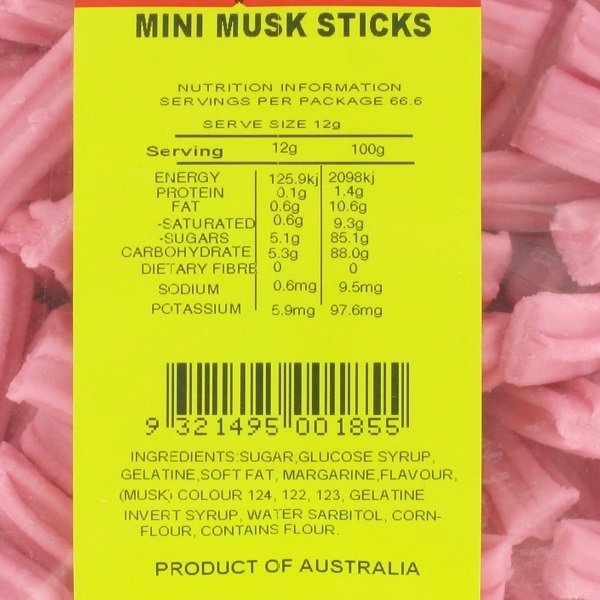 These yummy lollies are exactly what your party needs! Perfect for filling loot bags or serving at a party, this delicious 750g bag of mini musk sticks will be loved by every party-goer! They're sure to cure everyone's sweet tooth!