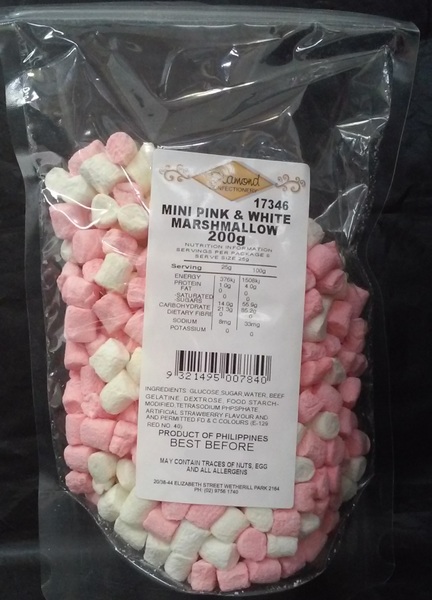 These delicious mini pink & white marshmallows will be a favourite amongst guests at any occasion! With 200g in a pack, they're perfect for small parties, cake decorating or just to have as a snack! Easily coordinated with the rest of our confectionery and party supplies for your complete party planning needs!