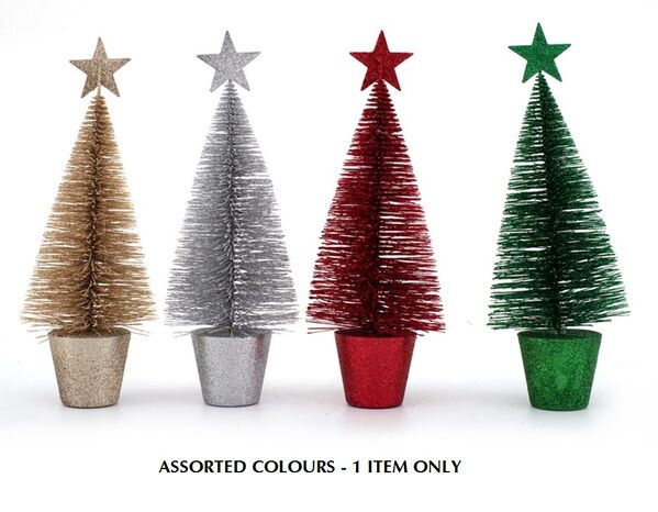 It features a glittered cork base & delicate glitter wire branches topped with a bright sparkling star and measures approx. 18cm (h) x 6cm (w).