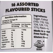 - 16 x 22g coloured and flavoured sugar crystal sticks