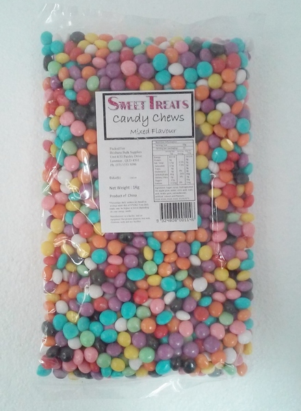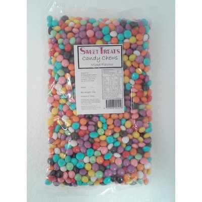 1kg bag of mixed flavour candy chews, perfect for heaps of different parties! Individual chews measure approx. 1cm in diameter.