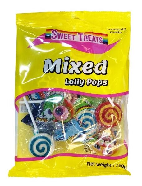 - Mixed colours/types - Colours/types of the lollipops willl vary depending on the manufacturer. We do not guarantee any particular colours or patterns will be present in the bag(s) you receive.