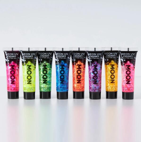 Moon Glow Intense Neon UV Glitter Face & Body Gels are a must-have for creating stand-out looks that shine bright neon by day and glow under UV lighting or blacklights at night. Wherever you are - their star quality will steal the show.