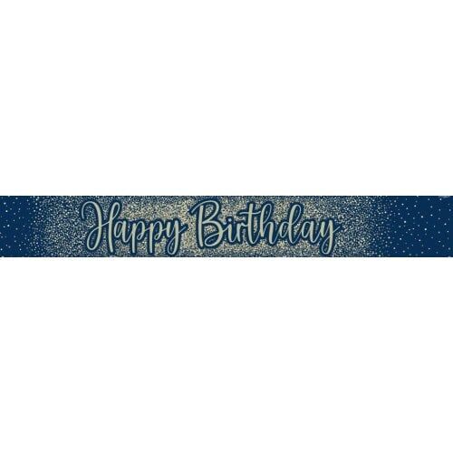 It is made from foil and features a navy background and a lovely gold 'Happy Birthday' message that repeats 3 times along the length.