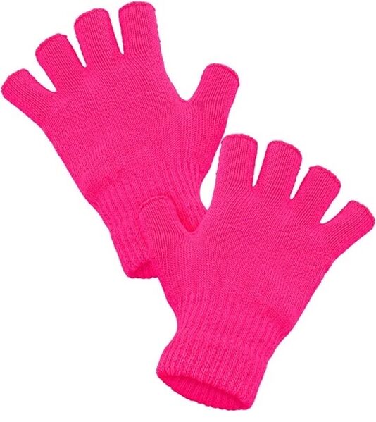 Bring bold colour and high-energy vibes to your outfit with these standout neon pink fingerless gloves—perfect for making an entrance!