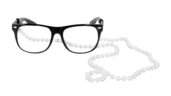 With black plastic frames and clear lenses, the stand out feature of these glasses is the classic pearl chain - perfect for keeping your specs within easy reach with no need to remember where you left them!