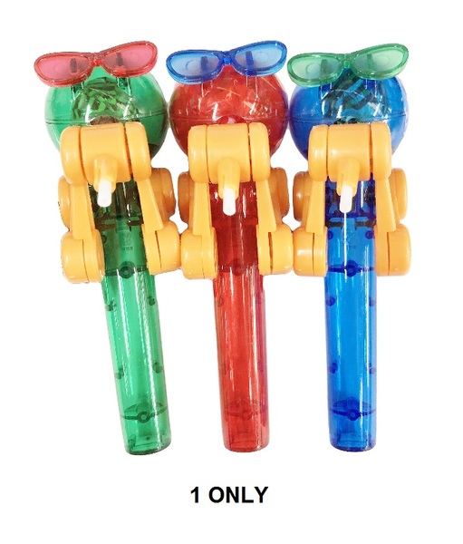 - Round ball-shaped lollipop in novelty plastic holder