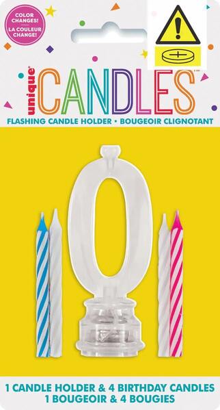 Celebrate your special occasion with this fun flashing candle holder - simply press the button and a small light within the holder flashes and changes colour.