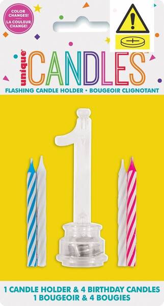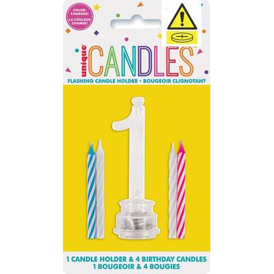 Celebrate your special occasion with this fun flashing candle holder - simply press the button and a small light within the holder flashes and changes colour.