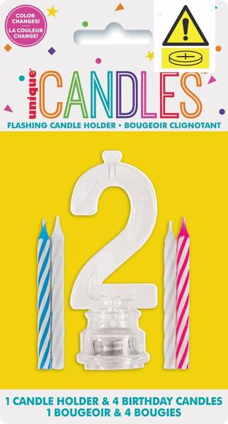 Celebrate your special occasion with this fun flashing candle holder - simply press the button and a small light within the holder flashes and changes colour.