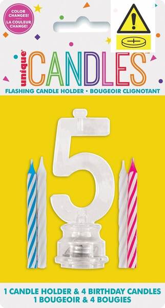 Celebrate your special occasion with this fun flashing candle holder - simply press the button and a small light within the holder flashes and changes colour.