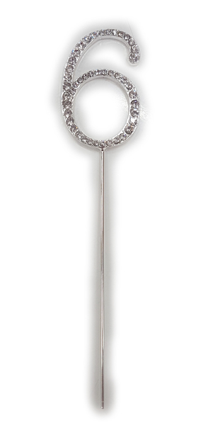 Number 6 diamante cake topper decoration. Number measures approx. 5cm in height and topper decoration measures approx. 14cm in total height (incl. number.)