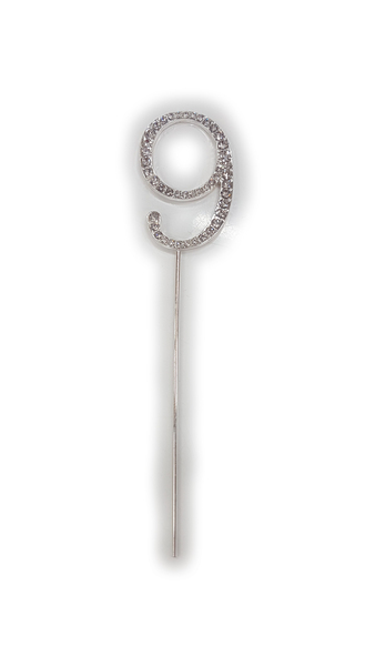 Number 9 diamante cake topper decoration. Number measures approx. 5cm in height and topper decoration measures approx. 14cm in total height (incl. number.)