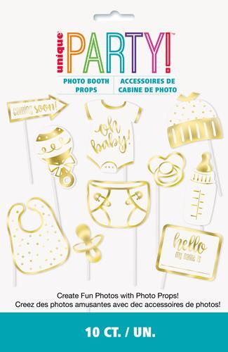 Baby shower themed photo props. 10 in a pack. Colours/design may vary from image.