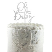 Measuring 10cm (w) x 10cm (h), this topper is made from silver acrylic and features 'Oh Baby' wording.