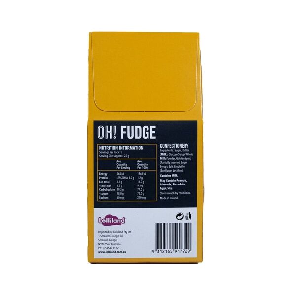 The Oh! Fudge Salted Caramel Fudge is a delightful treat known for its rich, buttery flavor and a subtle hint of sea salt.