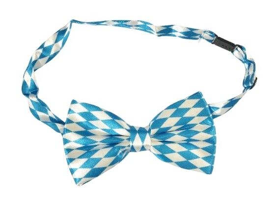 The tie is made from white & blue diamond print satin fabric and has an adjustable clip closure, making it both lightweight for comfortable wear and durable for repeated use.