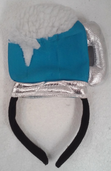 Oktoberfest headband with a beer jug on top, designed to fit most adults. Beer jug on top measures approx. 14cm x 12cm.