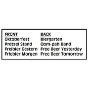 With 8 fun slogans such as 'Free Beer Yesterday', 'Oom-pah Band' and 'Free Beer Yesterday' you can mix and match to suit your party atmosphere.