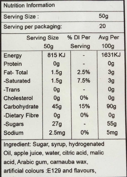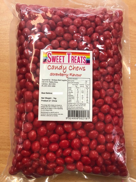 These candy chews have a soft centre surrounded by a hard candy outer shell and measure approx. 1cm in diameter.