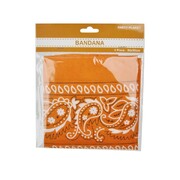 This versatile bandana is is made from orange fabric and features a square black & white paisley print.