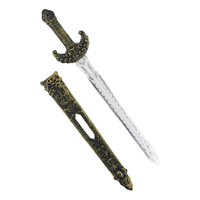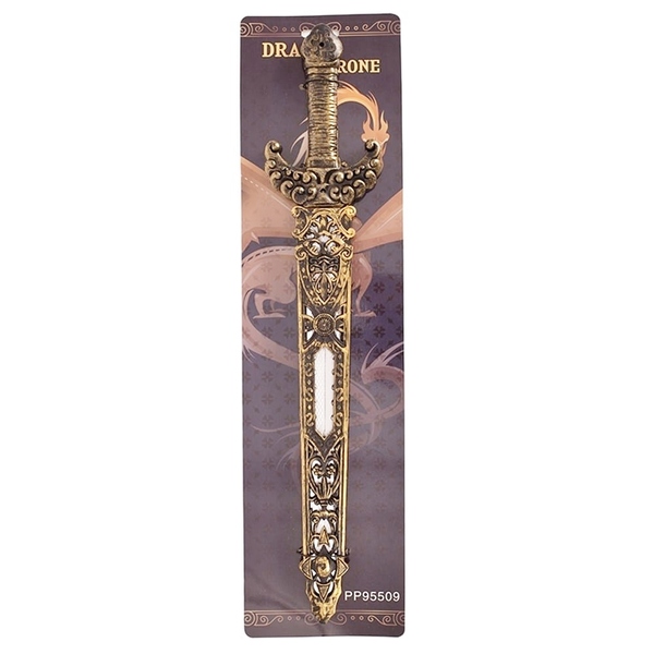 A gold scabbard with ornate filligree cut-out designs completes the look - the perfect weapon for a brave & true hero!