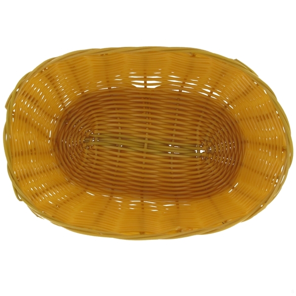 An attractive option for your table is this oval natural colour, woven plastic, party bread basket. It is constructed of polypropylene, is dishwasher safe and features a reinforced top, base and ribs.