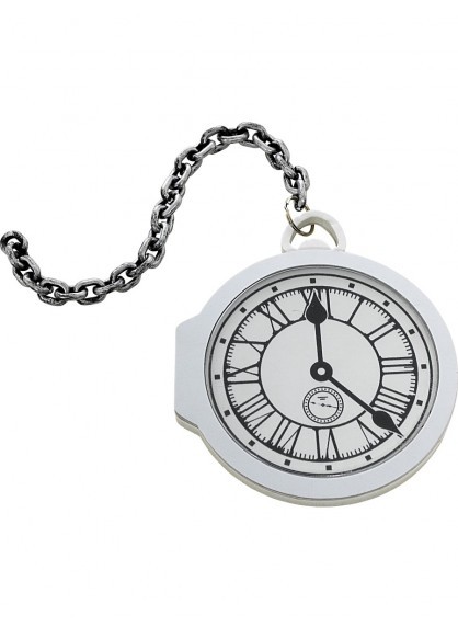 Oversized pocket watch with chain, perfect for a White Rabbit costume! Watch is made of foam (with a plastic cover over the clock face) and the chain is made of plastic. Watch measures approx. 15.5cm x 17.5cm and chain measures approx. 20cm in length.