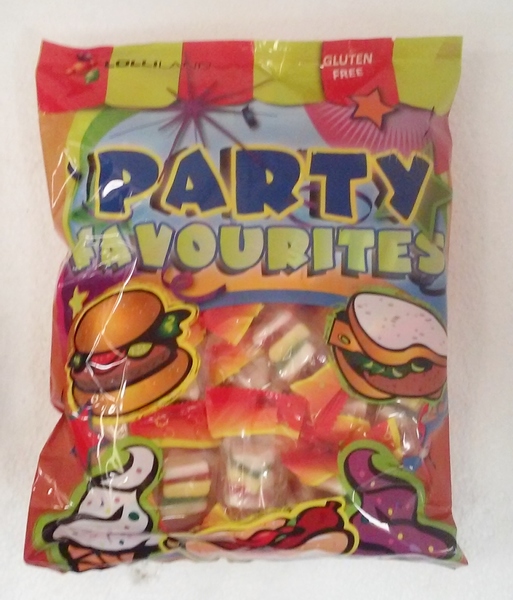 Party favourites assorted lollies (includes gummy hot dogs and sandwiches, among others.) 350g in a pack.