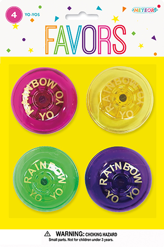 Pack of 4 assorted yo-yo party favours, each measuring approx. 5.5cm in diameter.