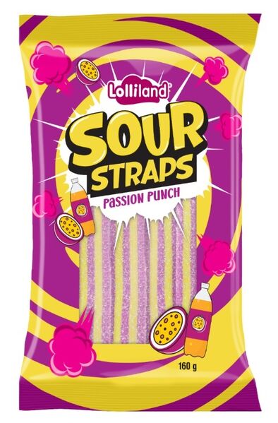 These straps deliver a powerful pop of delicious passionfruit flavour in every bite once you get through the outer sour coating.