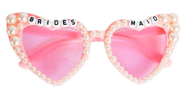 Featuring 'Bridesmaid' beading, luxe pearl accents and fun heart shaped lenses, these fab glasses are sure to be a big hit with the tribe.