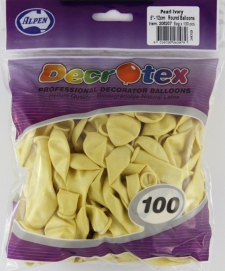 These small pearl ivory balloons are 12cm (5in) in diameter when inflated and are perfect for any party! Each pack has 100 balloons, and are perfect for topiary trees, table decorations and much more and will ensure your decorations look fabulous! Made of biodegradable, helium quality latex, but they are designed to be filled with air and used in table decorations.