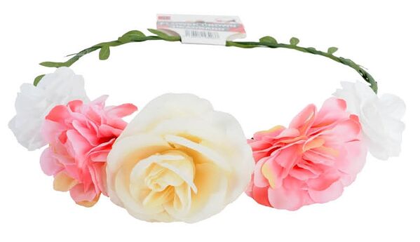 Elegant synthetic blooms in shades of pink, cream & ivory combine with green foliage in this lovely headpiece, invoking feelings of summer breezes and idyllic gardens, adding a touch of natural elegance and sophistication to your look.