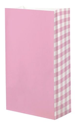 These bags are made from quality paper and have plain colour on the front & back, gingham print sides and white interior - ideal for using as party favour bags, pinata loot bags, lolly buffet bags... and more!