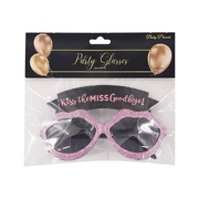 Featuring a pink glitter lips design, dark plastic lenses & an attached banner reading 'Kiss the Miss Goodbye!', these glasses will let everyone know the bride will soon be giving up her single status.