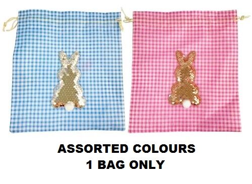 They have a reversible sequin bunny motif with a fluffy white tail on one side and are avaialbe in pink/rose gold or blue/silver colourways - you will receive 1 bag chosen at random from available stock.