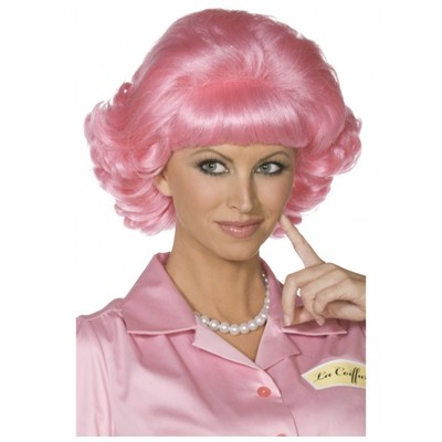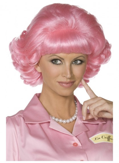 Pink Short Curly Grease Frenchy Wig k 1